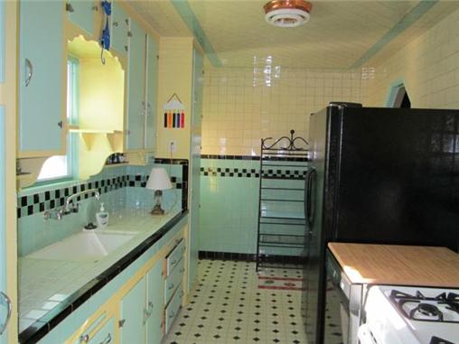 Now for many buyers, all this deco would be a turn-off. They would see this house as ‘too much work’–ripping out the tile and replacing it, updating the kitchen and bath cabinets, the sinks, the flooring. But there is someone out there who will buy this house specificically for the original art deco charm.