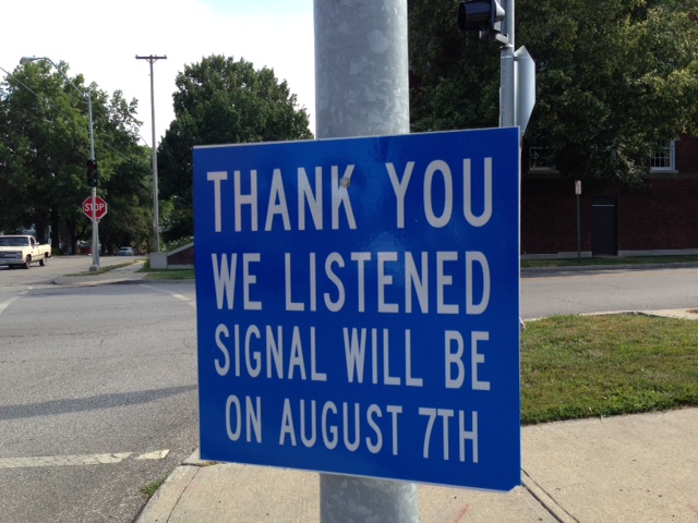 Residents howled at the changes, because they were not informed of the plans and several of these intersections are near schools.  KCMO says it is too costly to operate  these outdated signals and doesn’t have the money to replace them.  Stop signs, they say, will cause traffic to slow down and stop accordingly, plus  save money.