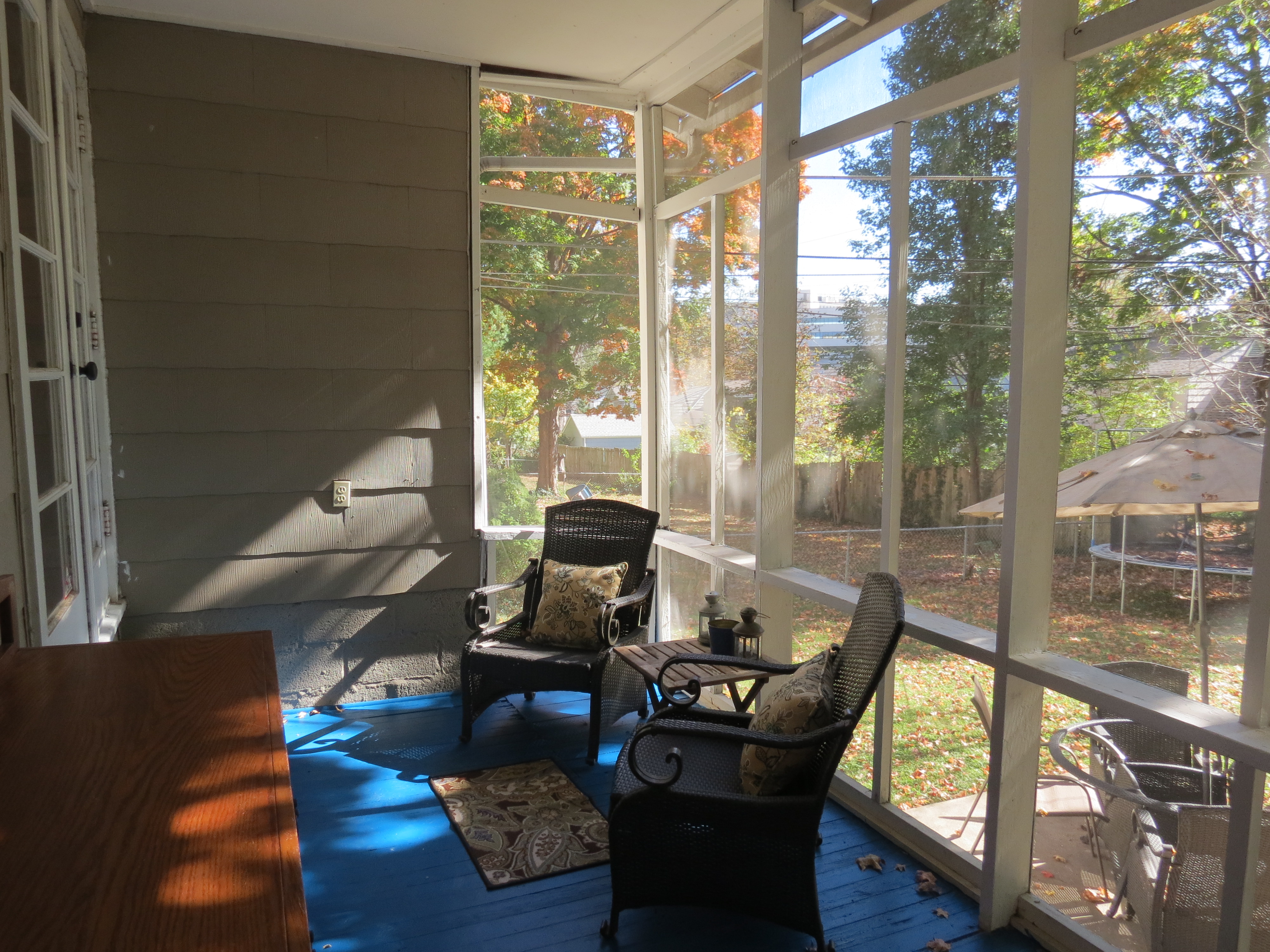 Here is one of my favorite features about the house: the screened-in porch! The doors are directly off the dining room–making it a perfect spot for entertaining guests or relaxing after a long day.