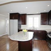 There are so many wonderful features in this home…where to begin? Let’s start with the open floor plan–another big plus for this house. The living room and dining room are open to the brand new gourmet kitchen. Notice the beautiful Cararra marble fireplace (with gas logs) niche wired and framed for a large flat screen TV. The hardwood floors have been refinished , new interior and exterior doors installed and 6″ crown molding and baseboards.