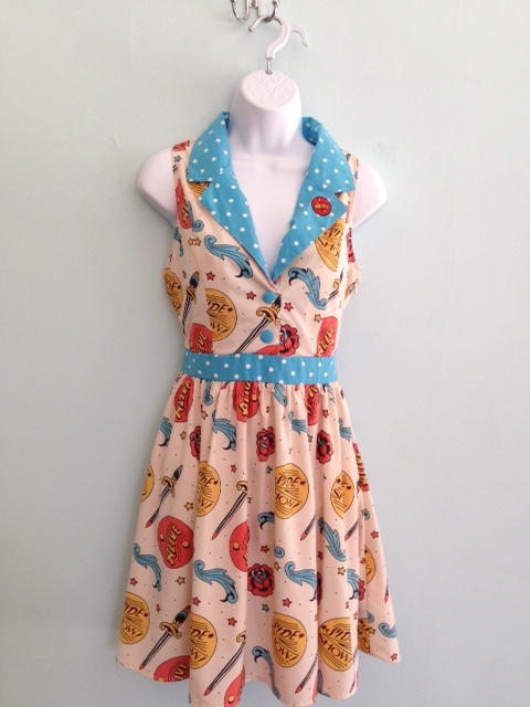 Owner Jacqui  Brewer was a world history and government teacher at St Teresa’s Academy. Working in retail throughout her student years, she kept thinking about the need for a dress shop in the neighborhood. Every day she would drive along Oak St towards STA and noticed the vacant store front. Every day she thought about opening the dress shop. Finally, she decided to quit her teaching job and made plans to have her own store.   dress twoThe front door greets you with a sign: Come in, it’s not as expensive as it looks. And that’s true! Most of dresses, made in the US and Europe, are priced between $55-$150. There are a variety of fabrics, prints and solids in the style of the 1940s through the 1960s, plus a few ‘little girl’ dresses. Jacqui will work with special orders for unique events and weddings.  You’ll also find really fun accessories here: some jewelry, unique luggage tags, coin purses, and a retro inspired laptop bag that can double as a handy make up tote!