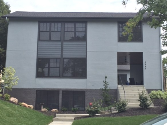 We do have a few examples of newly built homes in Brookside and Waldo that blend in well with the neighboring homes. (See photos above). Both of these homes have incorporated exterior design, details and features of the surrounding houses and fit well on the lot. On the Kansas side in Prairie Village, the same thing is happening–some new houses compliment the surrounding properties while others almost shock passers by as to how much they contrast with the homes next door. Here are two examples from PV: