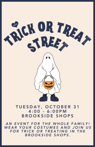 The main shopping area of Brookside will be filled with hundreds of trick or treaters later today from 4-6pm. Expect slow traffic and lots of pedestrians along 63rd St from Wornall to Main St. You’ll see some very creative costumes! Thanks to our Brookside merchants for carrying on this tradition!