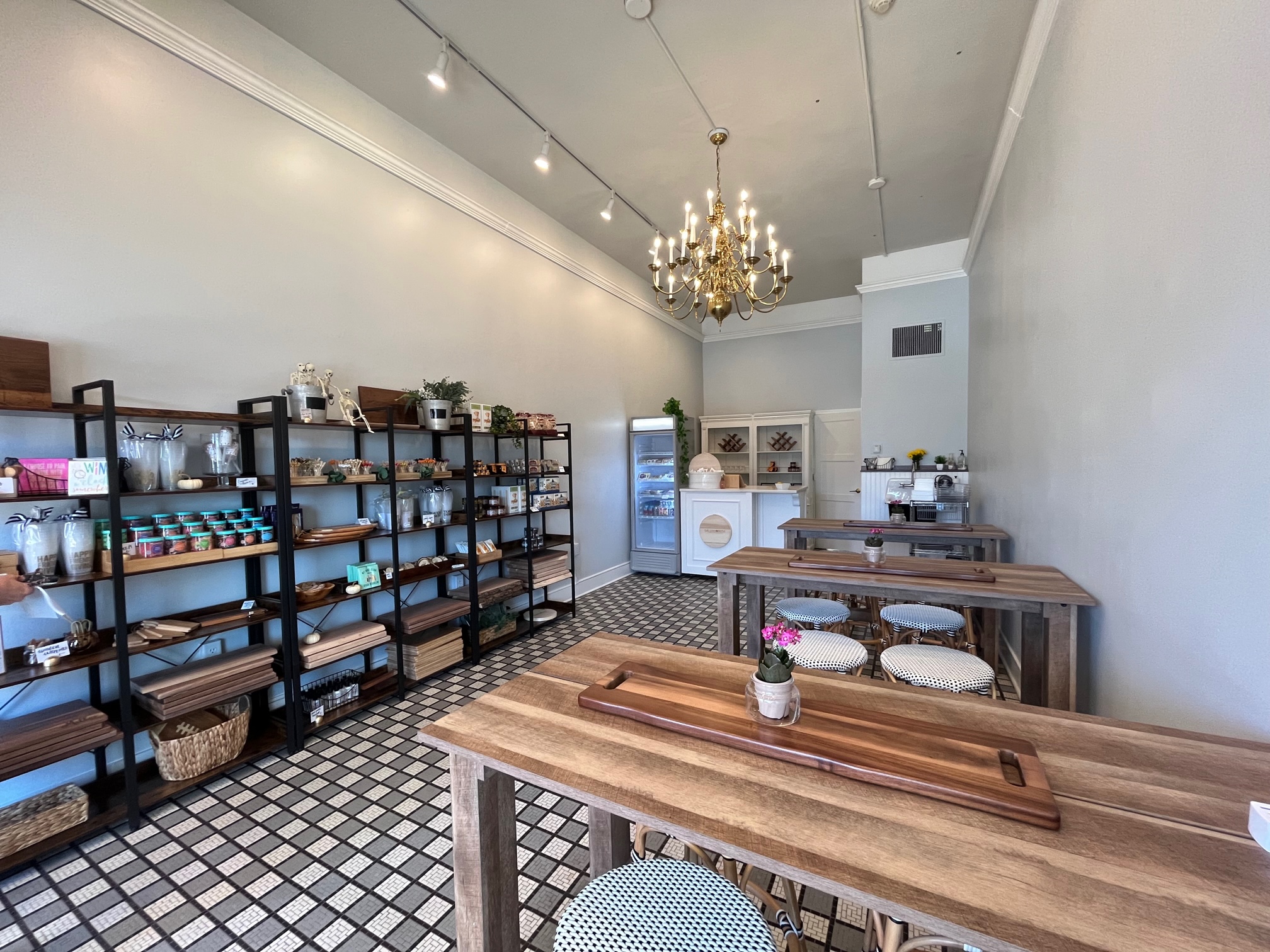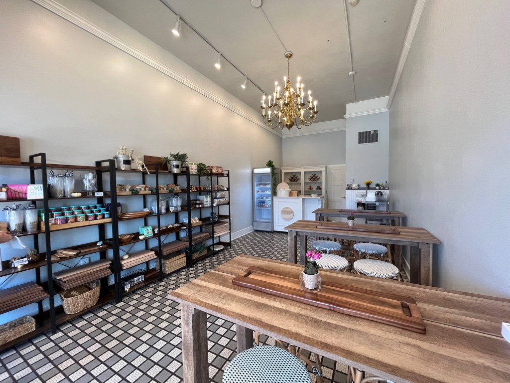 Inside this location, guests can pick up the stylish and tasty pre-ordered boards, and have a cozy place to gather, shop and create. There are grab and go “Char-Cutie” boxes for just $10, featuring a selection of meat, cheeses and other tasty fresh bites.  If you want the ingredients to create your own board at home, Salumi Rose has a cooler stocked with meats and cheeses (vendors include Underground Meats, Alma Creamery and Milton Creamery), plus shelves full of crackers, spreads, cute napkins, glasses, wood boards and other items for your inspiration.