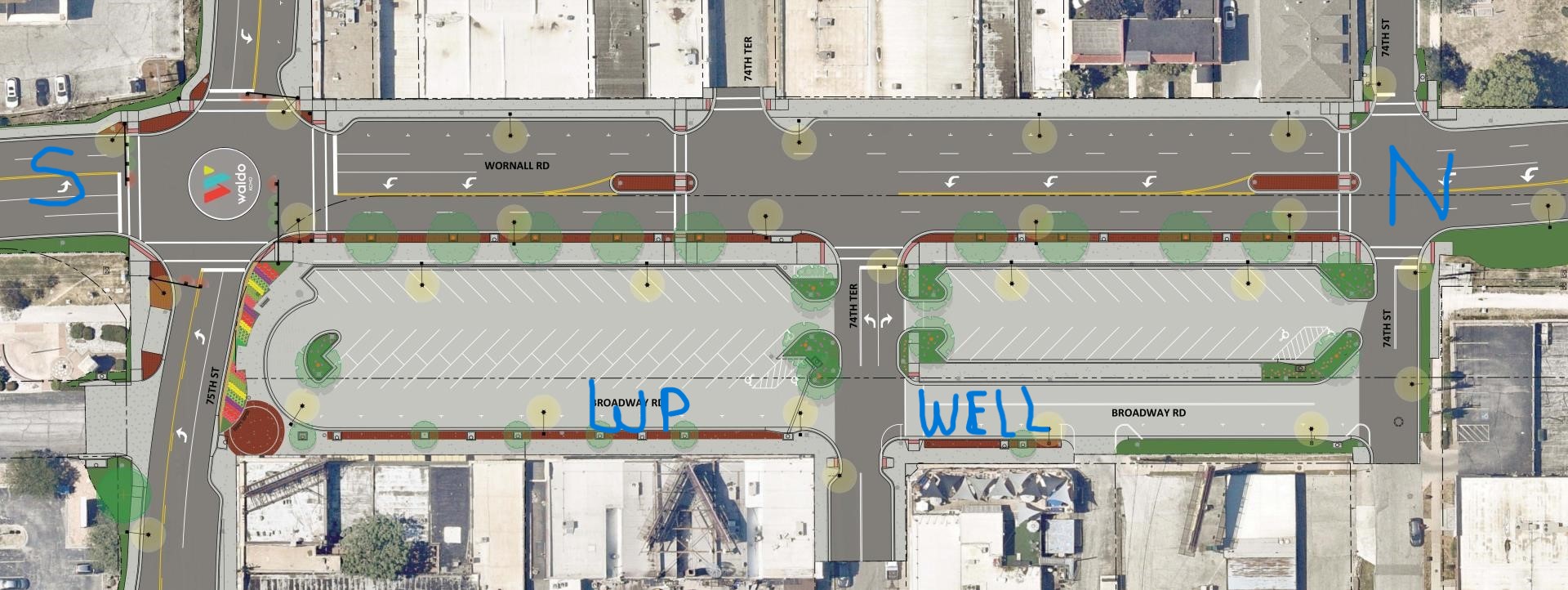This project has been in the works for several years and it’s finally happening. The “75th and Wornall Improvements-Engineering Division”, as it’s listed on the KCMO website, has more intricate details on what is planned for the area. I went to the Waldo Area Business Assn monthly luncheon a couple of weeks ago for a presentation–and took notes for reference which I have summarized here. Special note: the new apartment project going up on The Well corner will also be happening at the same time. I’ll post more details about that in the next blog.