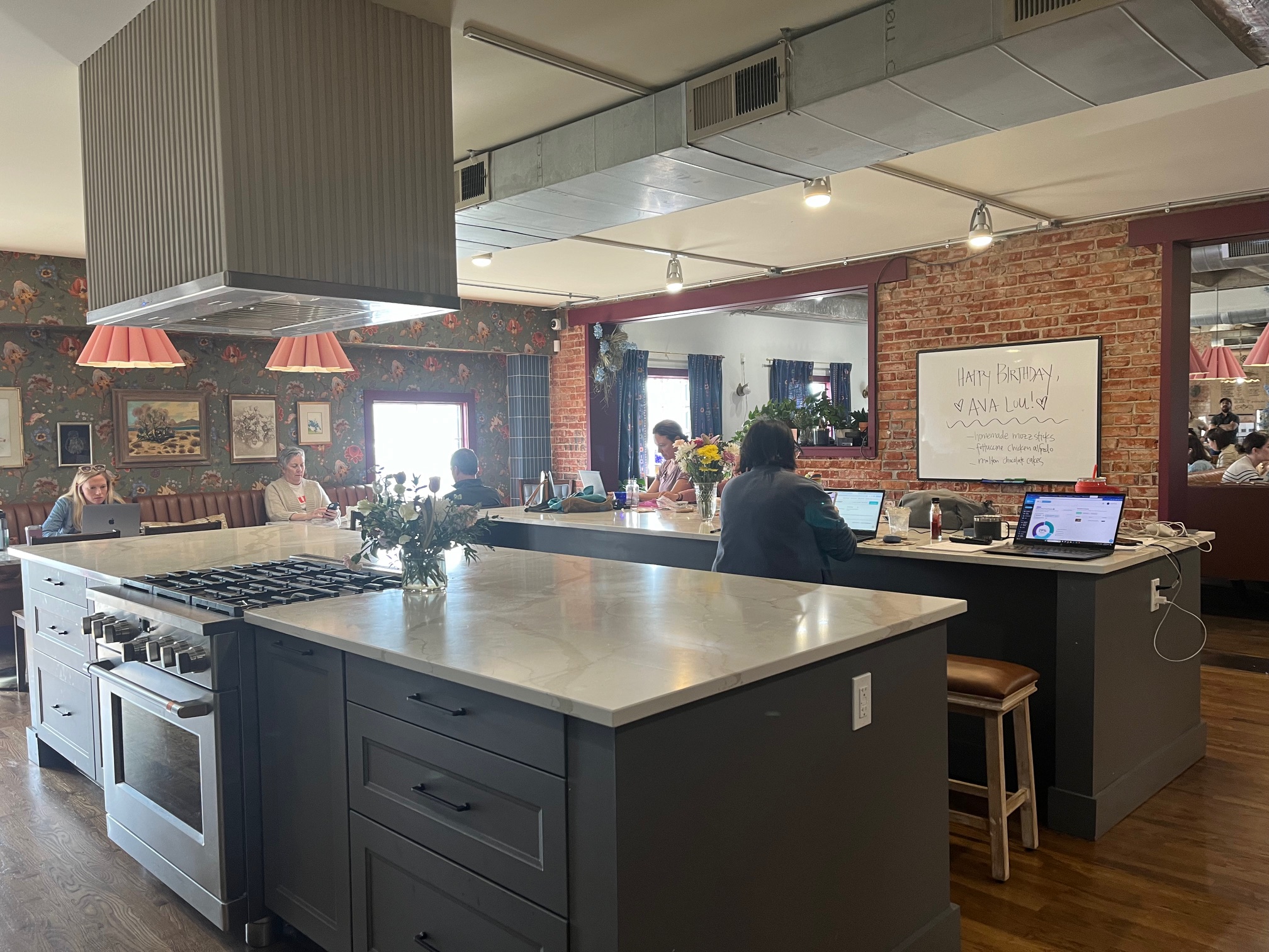 Hemma Hemma owner Ashley Bare is from Kansas City; she studied French and art history at KU and comes from a “big medical family”.  After college she was an au pair in Switzerland and then decided to go to culinary school in New York, following an inner passion for food.   She became a private chef and also developed recipes with cookbook authors.  Ashley started meal prepping for clients during the pandemic out of her home; demand grew so much that she started looking for a commercial kitchen.  After a location in the Crossroads fell through, she found this extra large space in Wlado and the landlord offered her a “great deal’.  She created the Hemma Hemma concept and opened last September.  (Ashley still offers the meal prep service called “Fill Your Fridge” –see the website for details.)
