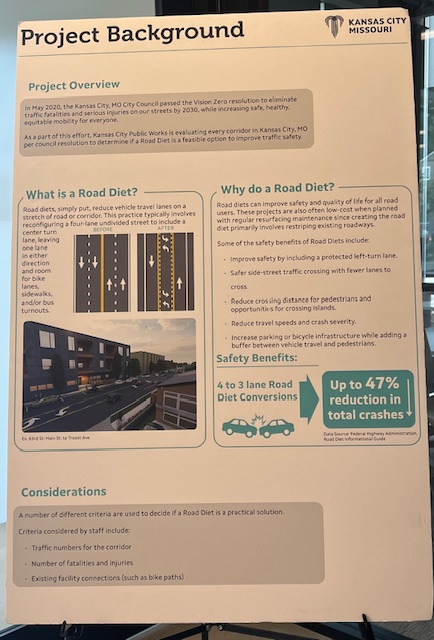 Last night I stopped by the public meeting regarding proposed safety improvements along Wornall Road. The City is considering reconfiguring the lanes along Wornall Road from 63rd St to Gregory.