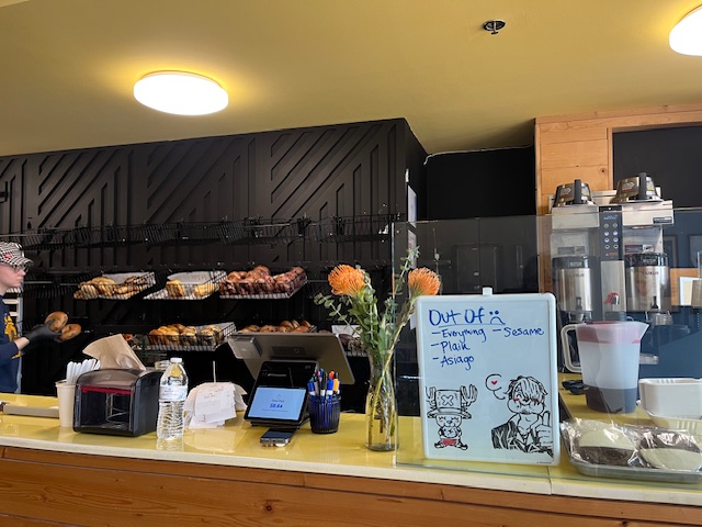 Luke Salvatore is the owner of Luca Bagel; if that name sounds familiar, it’s because he and his brother operate Providence Pizza in Grandview , and have since expanded to two other locations. A few years ago, Luke began experimenting with various recipes and started selling the bagels on Saturday mornings at the Grandview restaurant. Talking with friends involved with the OP Farmer’s Market, he decided to open a stand there on Saturdays. Word spread about the tasty treats and long lines started forming well before the market’s 7:30am official open time. At this point, Luke was still baking at the Grandview store and with the “massive” response to the OP pop up, he started to look for a brick and mortar location. He thought the Brookside would be a good spot because customers spoke fondly of the old Bagel and Bagel store that was here for many years. Plus, he knew the neighborhood liked to support local businesses. When the former Mattie’s vegan restaurant space opened up–it was “the right place at the right time” according to Luke. I asked him how many bagels they typically bake over the weekend–about 4000 pieces.