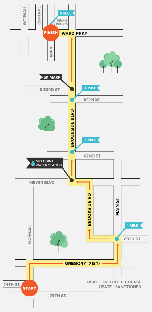 The 37th CCVI Trolley Run will close off streets the morning of Sunday April 27 . The race begins at 75th and Wornall, and runs along Gregory and Brookside Blvd north to the Plaza. Here’s the route map: