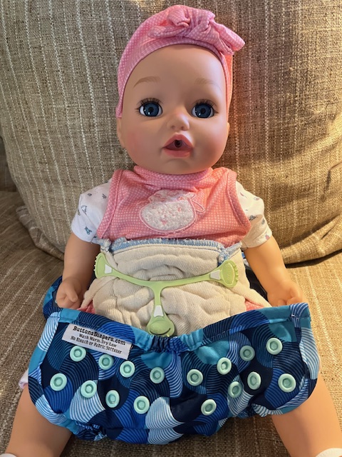 Cloth diapers have changed quite a bit since the old days. Design innovations have done away with sharp pins! Cloth diapers are now easily fastened with hooks; and the plastic pants worn over the diapers come in adjustable sizes to fit a growing bottom. Also offered are separate pad “inserts” to for extra absorbing. The Diaper Society offers three levels of service to choose from, all described on their website. They can provide the diapers, inserts, cloth wipes and delivery service; or if you have your own diapers, they will launder them for you. There is a rental option available as well. If you are interested in learning exactly how the program works, Ryan will come to your home and give you a demonstration of how the diapers fit and the service options.