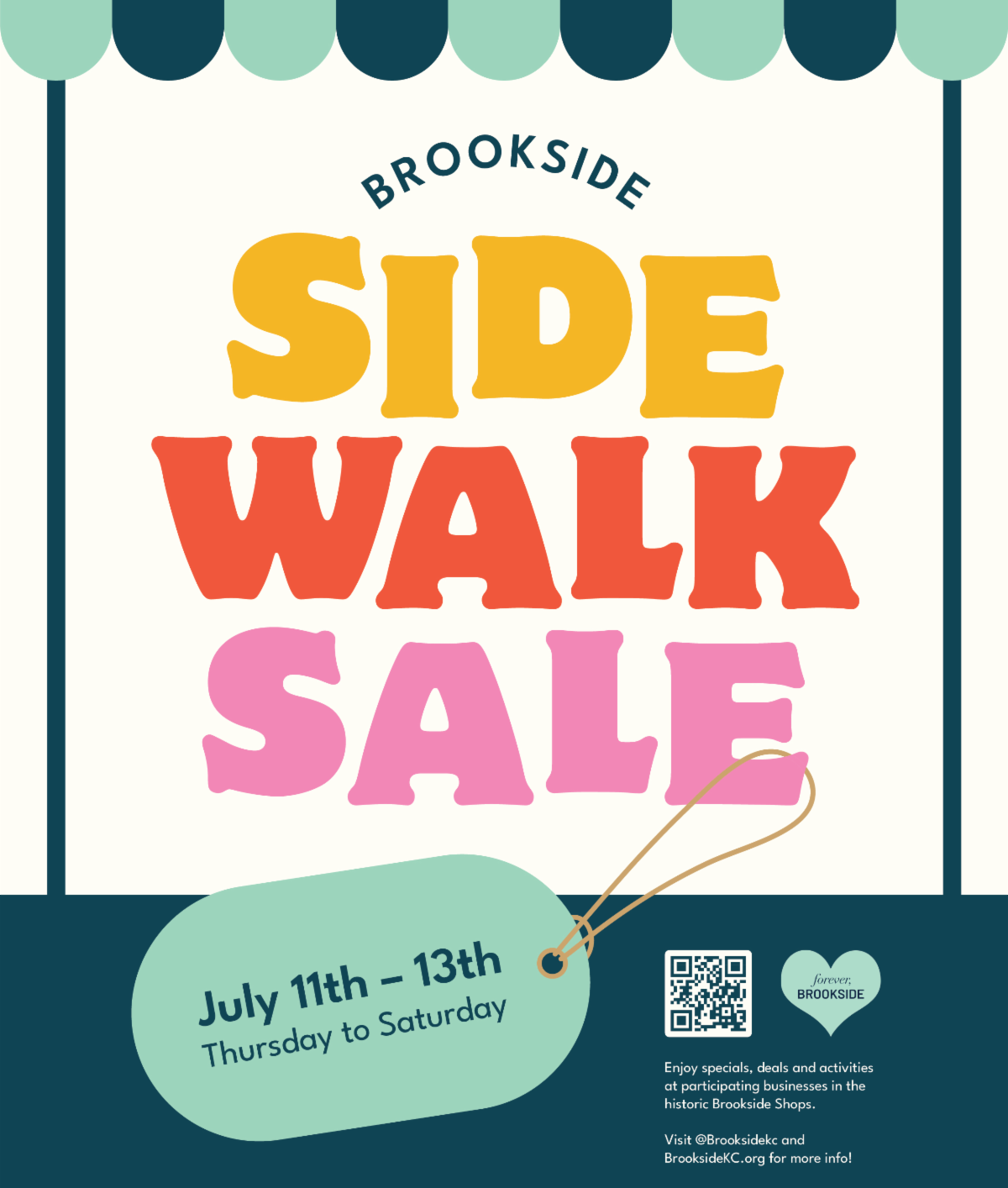 Supporting our local merchants is more important than ever at this time…please considering checking out the annual Brookside Sidewalk Sale this weekend! Many shops will be offering special discounts and sales–some eateries as well–starting Thursday July 9 through Saturday July 11. A partial list of participants include 5B&Co Candlemakers, Tuesday Morning, Lady Bye, COCO Brookside and Charlie Hooper’s.